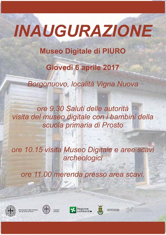 Museo Digitale di PIURO Giovedì 6 aprile 2017 Borgonuovo, località Vigna Nuova ore 9.30 Saluti...